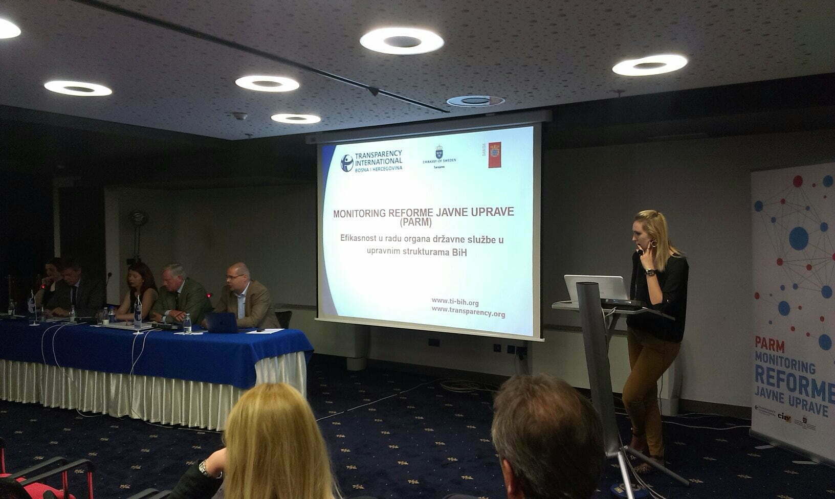 Stanje u javnoj upravi je neodrživo i reforme ne daju željene rezultate, posebno uzimajući u obzir sredstva koja su do sad uložena u reformu javne uprave, naglasio je TI BIH na prezentaciji. Neefikasnost i glomaznost administracije, neprofesionalnost, nedostatak transparentnosti, odgovornosti i integriteta u javnoj upravi, te korupcija i neracionalno trošenje javnih sredstava, samo su neki od problema sa kojima bi se vlasti u BiH pod hitno morale suočiti. „Neprihvatljivo je da se država zadužuje da bi pokrila administrativne troškove preglomazne javne uprave, pri čemu oko trećina budžeta odlazi na plate za zaoslnene u javnom sektoru, dok građani zbog takve politike preskupo plaćaju neefikasnu i neučinkovitu javnu upravu“, istakla je Lejla Ibranović, v.d izvršnog direktora TI BiH.