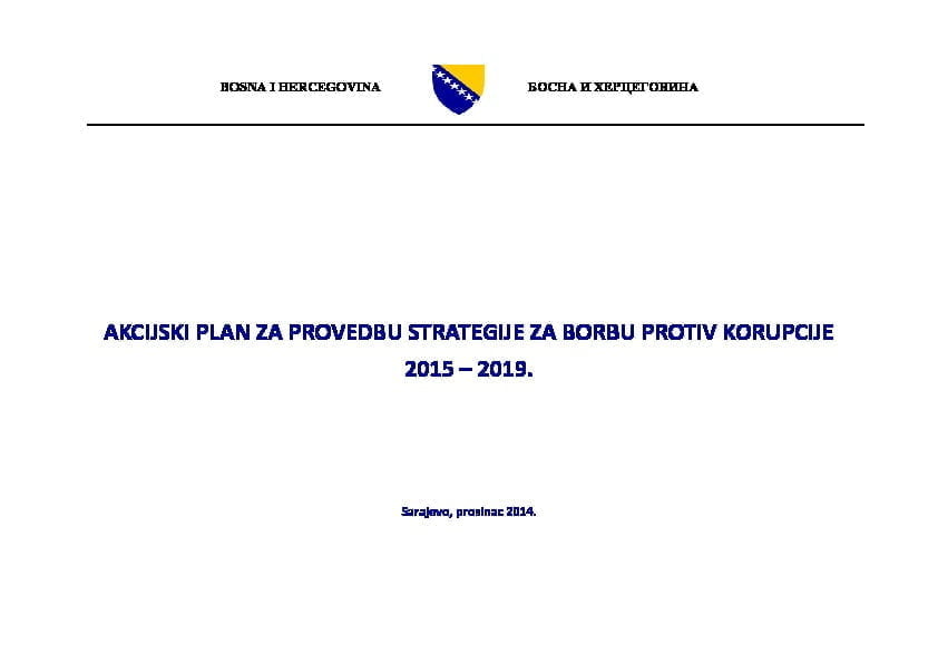 Strategija za borbu protiv korupcije u BiH za period 2015 – 2019. godinu (u daljem tekstu Strategija) i prateći Akcioni plan predstavljaju peti strateški antikorupcijski dokument koji je donesen u BiH sa ciljem planskog i strateškog suprostavljanja korupciji. Strategija i Akcioni plan su usvojeni 7. maja 2015. godine na 6. sjednici Vijeća ministara Bosne i Hercegovine.